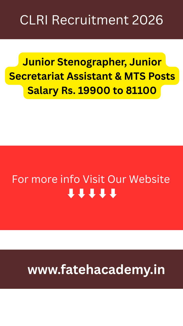 CLRI Recruitment 2026: Junior Stenographer, Junior Secretariat Assistant & MTS Posts